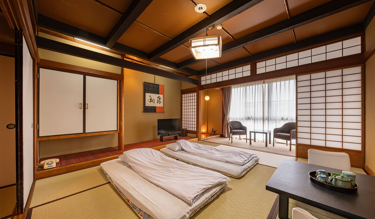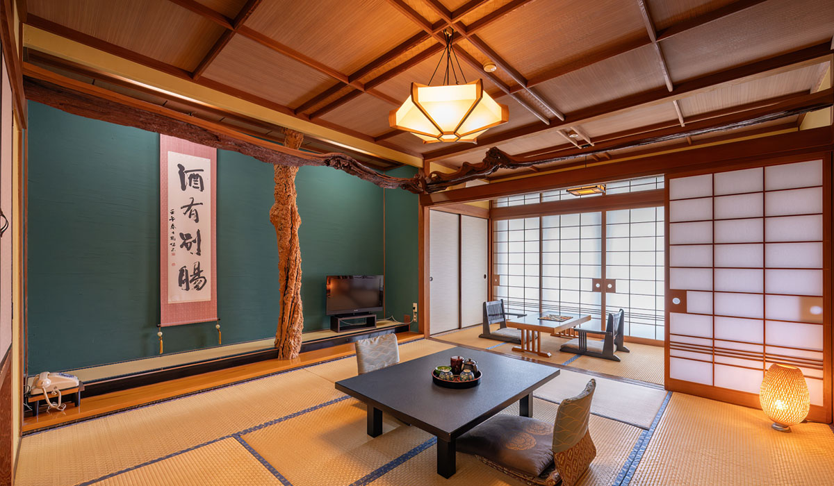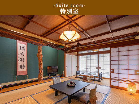 お部屋の広さや設備に応じてグレードが異なります。ひさご・黒柿・夕月・桐・吉野・福寿・・・・ とお部屋の名前がそれぞれございます。柱や床の間の細部に、部屋の名にちなんだ素材や調度品を揃えております。 ゆっくりとお寛ぎいただける和の空間をご用意しております。