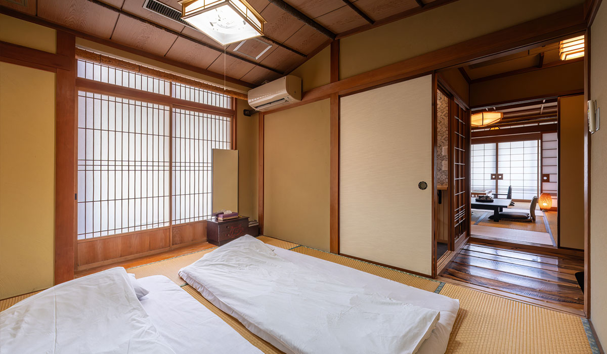 お部屋はチェックイン時よりお布団をご用意しております
